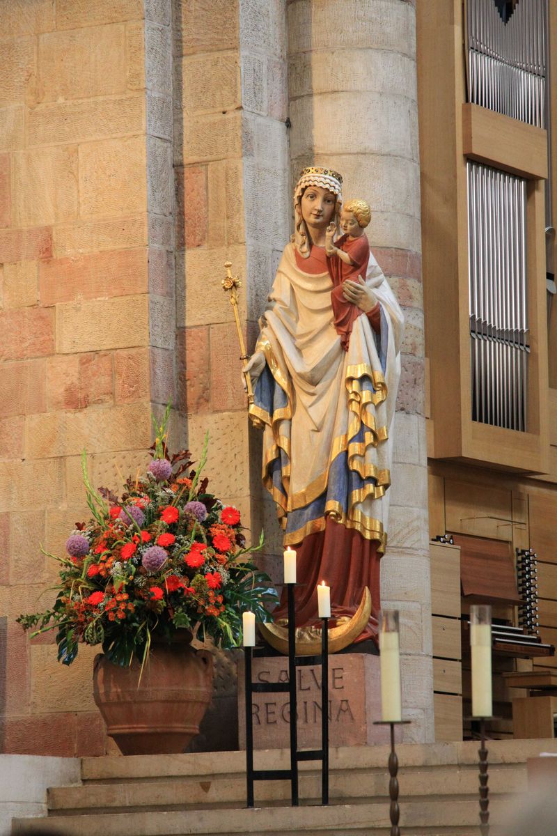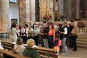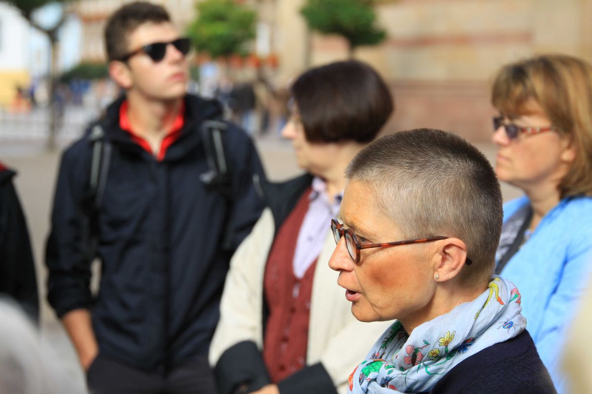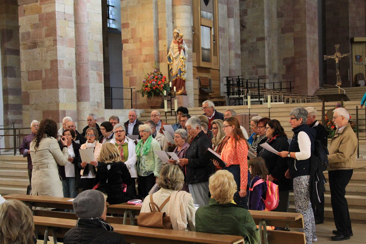 55 Mitglieder und Freunde des Sängerbundes Ruit starteten am Samstag, 26. September 2015 zum Jahresausflug in die Pfalz, nach Speyer am Rhein, der wunderschönen Dom- und Kaiserstadt, die eine über 2000jährige Geschichte aufweist. Im Mittelpunkt des Programms standen Besuch und Führung durch den größten erhaltenen, bedeutendsten Kirchenbau der Romanik, den prächtigen Kaiser- und Mariendom. Seine Grundsteinlegung erfolgte im 11. Jahrhundert unter dem Kaisergeschlecht der Salier. Der Dom ist Grablege von acht Kaisern und Königen, UNESCO-Weltkulturerbe und prägt bis heute die Silhouette der Stadt. Von der beeindruckenden Akustik des Kirchenschiffes konnten sich die Sängerinnen und Sänger selbst ein Bild verschaffen, beim Gesang zweier geistlicher Lieder im Chorraum zum Ende der Besichtigung. Nach einer zünftigen Stärkung beim Mittagessen in der nahen Hausbrauerei Domhof lernten wir in drei äußerst kurzweiligen „Speyermer Stadtspaziergängen“ die weiteren Sehenswürdigkeiten der sympathischen Stadt kennen: ausgehend vom Domnapf ging es via Stuhlbrudergasse über die einzig erhaltene mittelalterliche Sonnenbrücke am Fachwerkhaus „Halbmond“ vorbei in die romantische Altstadt zum „Hasenpfuhl“. Dessen Zentrum bildet das Kloster St. Magdalena, einst Wirkungsstätte der Philosophin und Karmeliterin, Dr. Edith Stein. An der „via triumphalis“, der Maximilianstraße, Hauptachse und Prachtstraße der Stadt bewunderten wir Bauten aus den verschiedensten Epochen, wir kamen am spätbarocken Rathaus, an der lutherischen Dreifaltigkeitskirche (wegen Renovierung leider geschlossen) und am Jakobspilger vorbei, bestaunten das 55 m hohe Altpörtel, ehemals westliches Haupttor der Stadt. Das reiche jüdische Erbe Speyers lernten wir im mittelalterlichen Judenhof mit der Synagoge (Ruine) und dem rituellen Reinigungsbad, der Mikwe, kennen, der ältesten Anlage dieser Art in Deutschland. Bis zur Rückfahrt des Busses blieb dann noch Gelegenheit zum individuellen Bummel durch die schmucken Straßen mit ihren hübschen Cafés, Weinstuben und schönen Geschäften. Die Abschlusseinkehr auf der Rückfahrt im „Grünen Baum“ in Leonberg-Warm-bronn rundete einen erlebnisreichen und harmonischen Jahresausflug 2015 ab.