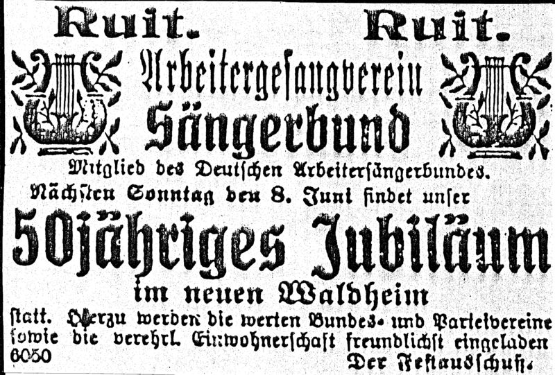 Seit 1897 existierte innerhalb des Sängerbundes eine Gesangsabteilung des Turnerbundes, die sich die »reichhaltigere« Ausgestaltung der Vereinsfeierlichkeiten des Turnerbundes zum Ziele gesetzt hatte.