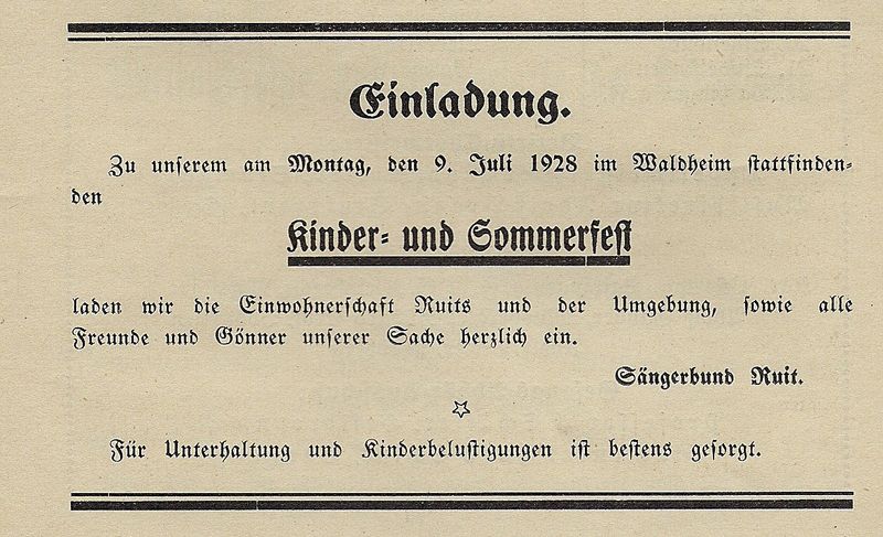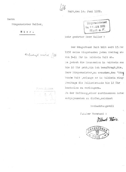 Der Chronist vermerkte zu diesem historischen Schritt in seinen Aufzeichnungen: »Für die Pflege und Förderung unseres edlen Gesanges aber wird der Wunsch ausgesprochen: Nie wieder zwei Gesangvereine in der Gemeinde Ruith!«